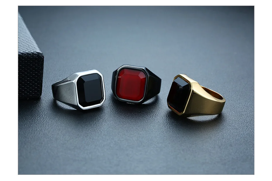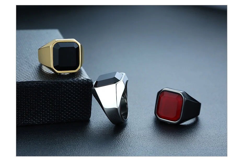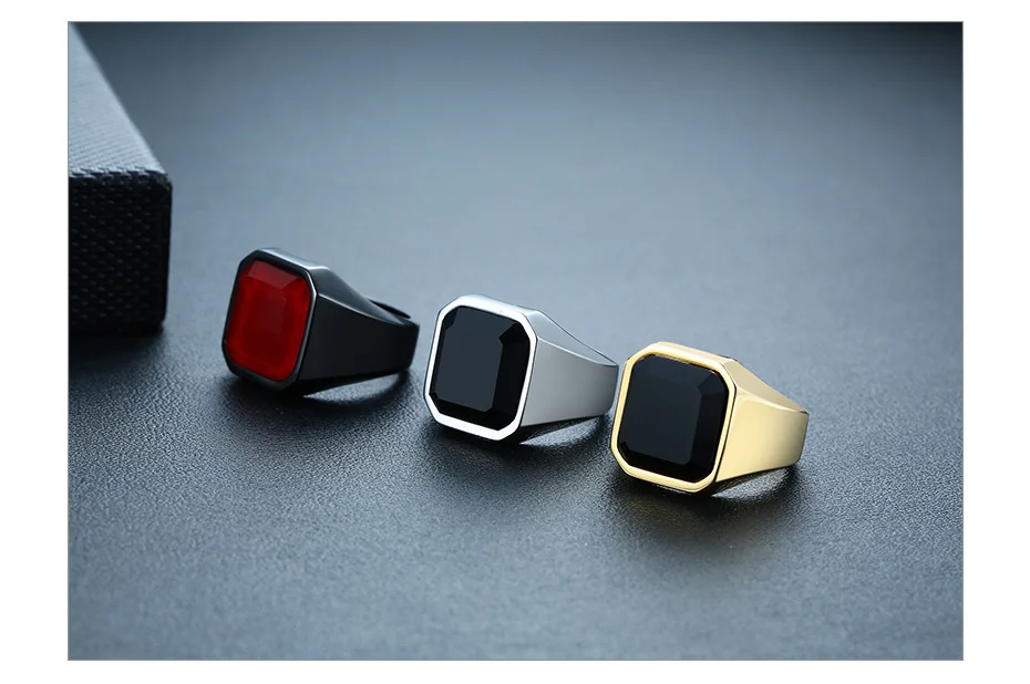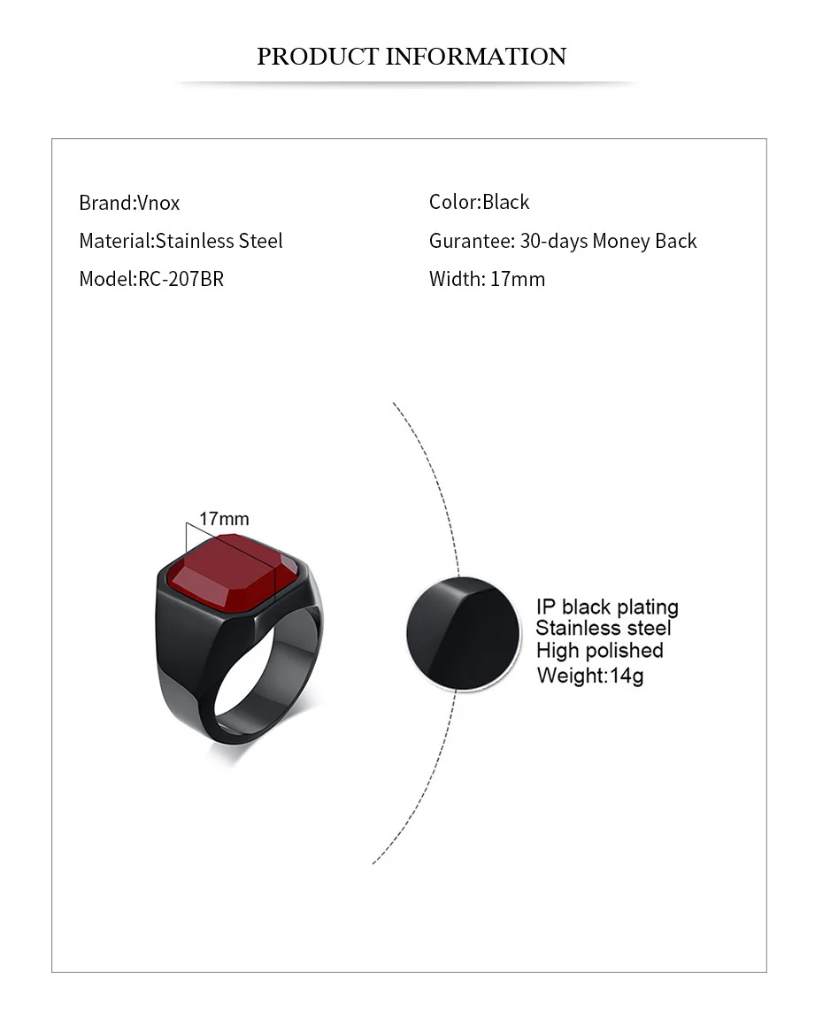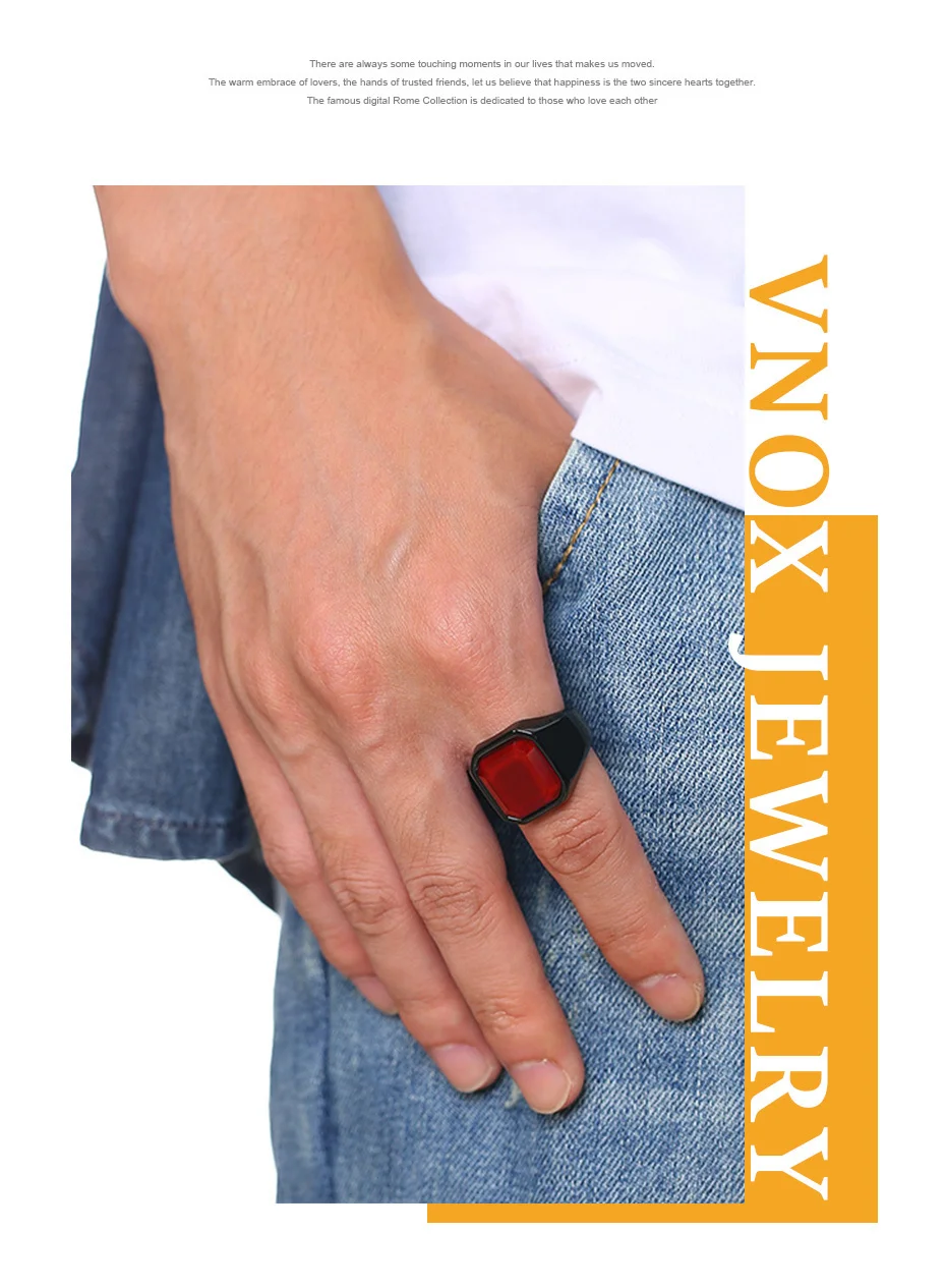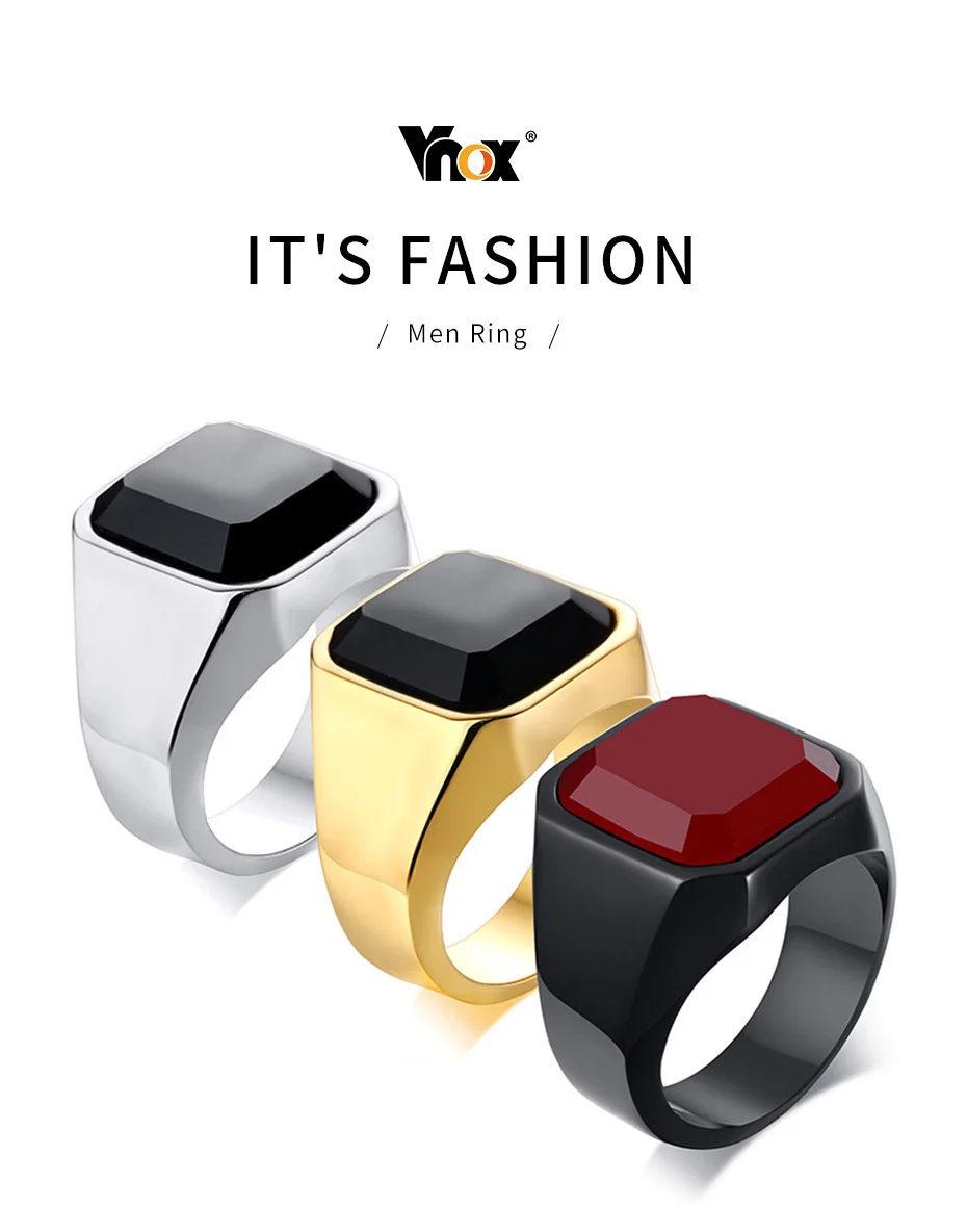 Vnox Stylish Signet Rings for Men, Male Pinky Ring with Black Square CZ Stone,Gold Color Stainless Steel Metal Jewelry ,US Size